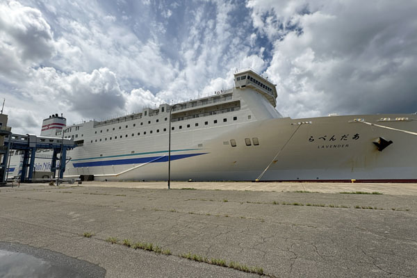 8/9 5:22 石川県を出発。 7:00 蓮台寺PAで休憩。 8:50 道の駅新潟ふるさと村到着。向かいのイオンでお弁当調達。9:30にふるさと村開店し、札幌へのお土産を調達。10:30前くらいに新潟フェリーターミナルに到着。もうほとんど車が並んでて、かなり遅い順番。車は11時に乗船開始。同乗者は11:15乗船開始。今回は新日本海フェリーのらべんだあ。 お昼は部屋。夕食はレストランでビールとつまみで。