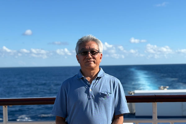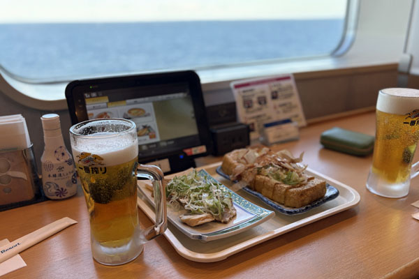 乗船して乾杯