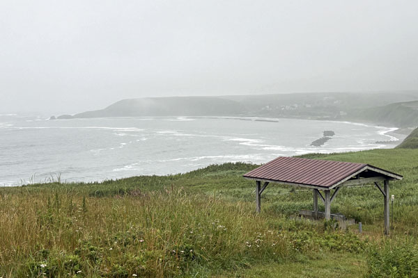 湯沸西岬がかすかに見える