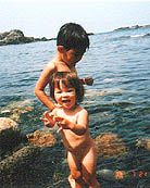 水族館の裏で、裸で磯遊びです。→