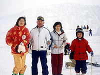 蔵王で、恒例の春休みのスキー合宿です。 パパは仕事ですが、みんなはスキーです。カズも随分滑れるようになったらしいですね。 福島のおじいちゃん、おばあちゃんと、秀おじちゃん一家4人と、ママ、カズ、アユの9人です。
