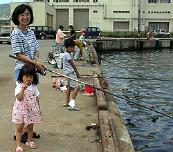 ■7月31日 朝 小樽の港でチカ釣りです。 |