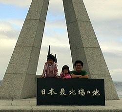 ←これはノシャップ岬の最北端の地 パパは、学生時代バイクでここへ来て同じような写真を撮った記憶がありますね。 そのときは、寒くてたいへんだった。 |