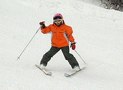アユが、ポールを持ってすべる練習を始めました。
