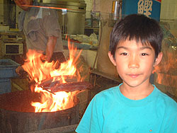 | ■5月4日 アユ踊る清流キャンプ場出発し、四万十川へ ![]() これは、途中の”道の駅須崎”です。目の前でカツオのたたきを作ってくれます。これはうまいっ!!! 四万十川中流の天満宮キャンプ場へ |