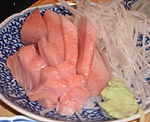 おし鳥で出てきたメニューです。積丹の生黒マグロのトロと、イクラ軍艦、ウニ軍艦、トロの鉄火巻き。 いつもながら、いい加減な会計で、こんなの食ってたのにいつもと変わらない値段でした。 |