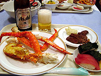 ■VIZスパハウス 夕食はホテルアルファトマム ←この日の夕食は、予約を取っておいたので、並ばなくて済みました。ホテルアルファトマムの6F宴会場が、今日から年末、年始だけの臨時バイキングレストランになります(ずいぶん昔にも一回ここで食べた)。 |