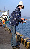 買い物の帰りに、日明の港へ寄ったら、甲イカが釣れていた。早速、エギを買いに行って、甲イカ釣りに初挑戦。 アユはルアーを投げる練習のつもりで、がんばってます。少し投げられるようになって来ました。