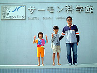 ■8月17日 HONDA中標津でオイルシールの交換 ATが壊れてる! 朝、ママと一緒に早起きして(珍しい!)、河口あたりで立ちこんでルアーを振った。真夏だと言うのに、めちゃ寒い。ウエーダー越しに、海水の冷たさが伝わってくる。たまに、大きな波が来て、つらい。結構我慢してやっていたのだが、全く魚の気配がなく、ノーヒットで終わる。われわれがやっていた河口側は、ほかにも5人くらい居たが、全員ノーヒット。少し向こう(右岸)の玉石浜の方にも10人くらい居たが、一人が一本釣ったのみか??(見てる範囲では)。 9:00にはテントを撤収し、中標津のHONDAプリモへ向かう。10:00には着いて、車を渡して作業をお願いした。かなり時間がかかるとのことで(シール交換後に、走ってみるらしい)、代車(LOGO)を借りて、標津のサーモンパークへ遊びに行った。