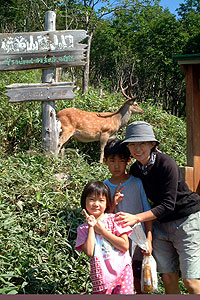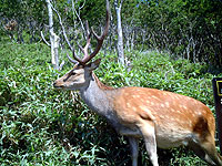 写真のシカは大きなオスだが、すぐ近くに、メスのシカも居た。 このルートでは、ヒグマも結構頻繁にお目にかかれるらしい。 この日は、キツネも出ず、エゾシカのみ。こんなに天気がいいと、こんなものかな。 この日は、いつものウトロの知床野営場にキャンプです。ここでまだトラブル発生。なんとテントのポールが一本折れた! 今回は、いろいろ壊れる旅です。 管理人さんに、金ノコを貸してもらって、折れた(割れた)所を5cmほど切り取って、これをフライシートのポールと入れ替えることにした。これでフライが多少たるむものの、実害なし。不幸中の幸い。そろそろこのテントも限界かなー?8年目か9年目になる。 |
