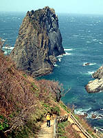 | 神威岬です。ここはその昔、女人禁制の地だったとか。昔、念仏トンネルへ釣りに行ったことがあります。 |