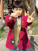 ■釣堀で、ブラウンとニジマス カズとアユは、釣堀で今日の夕食のおかずをゲットすることに。ここの魚は、結構大きいのが多く、釣るのは面白そうだけど、お金に注意。今回は、4匹釣って、3000円かかりました(おまけしてもらったかな?)。