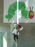 都美術館を抜けて歩くと、いよいよ目的の「国際子ども図書館」。想像していたよりこじんまりとしたたたずまいで威圧感がなく、絵本に親しめそうな雰囲気があって好感が持てました。3階の展示室で「エリック・カール展」をやっていました。こちらも無料展示。 |