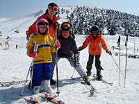 ■恒例の「福島のおじいちゃんスキー合宿」です。 残念ながらパパは欠席ですが、総勢9名の大家族スキーです。 例年、この時期の蔵王は、樹氷も大きな形で残っていて、時間と天気によるけれど、雪もそこそこ良いのですが、今年は積雪量はたっぷりあるにもかかわらず、気温が高く、ゲレンデは全コース春スキー状態でした。(もう春なんですけどね) そんな訳で、地蔵山頂駅の樹氷はくずれていて、その片鱗しかみることができませんでした。残念! 今年から、山頂線地蔵山頂駅までのロープウェイが新しくなりました。 山麓駅からの乗り換えも、とてもスムーズ!いやな階段の上り下りもなくなりました。ロープウェイは12〜16人乗りぐらいで、今まで見たことがないタイプ。眼下に広がる樹氷原がきれいに見れるように、と考えられて造られたものなのでしょう。視界が広く、ゴンドラ特有の圧迫感もなく、爽快そのものでした。 ■横倉のかべ、モーグルバーン。 かずもあゆも、はじめてボーゲンが出来たのが、この春合宿でした。もう今では、2人とも私の手をはなれ、急斜面も難なくこなし、スケーティングもいつの間にか覚え、コブ斜面にも突っ込んで行きます。たのもしくなったな〜。 初日の横倉のかべは、アイスバーン。私はさすがに大回りでゆっくりきたのに、祐太朗くんは、果敢に攻めてすべってきた。う〜〜ん。最後、横倉第一ペアリフト下に、モーグルコースが出来ている。斜度もきつくなく、コブの大きさもちょうどよく、気持ちよくすべることができる。祐太朗くんもすべるが、完走できない模様。今のところ、ここだけは私が一番かな? |