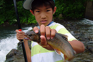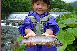 もちろん、主目的はカラフトマスだったのだが、ボーズで終了。昨年、一昨年とお盆にいい釣りが出来たのだが、一週間違いでこんなものか?あたりが一回っきりで、バラして終わり。まあ敗因は言い出すときりが無いが、こんなもんでしょう。来年は必ず釣ります。 今回は、津別川、羅臼川と川の釣りが面白かった。カズとアユが川でも釣りができるようになったということ。それから今回初めてフライフィッシングの道具を買い揃えて初挑戦したが、ウグイ、ヤマメ、アメマスなど釣ることができた。アメマスも我が家としては始めての獲物(もちろん独身時代には釣ってたけど)。いつも真夏なのでアメマスには縁遠かったのです。それから、今回旅を通して、一番の大物は、アユが釣った29cmのオショロコマだ。こんなの初めて見た。 |