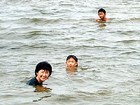 網走湖で、人が湖に入っているのを発見。けっしてきれいではない湖なので、不思議に思ったが、しじみ取りをしていることがわかった。