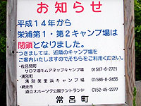 温泉の後、近くの栄浦キャンプ場に行ったのだが、なんと平成14年度から閉鎖となった模様。