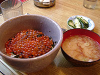 ■ウトロ くまのや 知床に着いて、まずはくまのやで昼食。カズはいくら丼。他はくまのや特製ラーメンを食す。このラーメンがなんともうまい。エビカニスープで、北海シマエビと、タラバの身がトッピングされている。