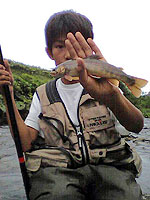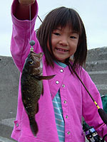 この日は、入れ食いとはいかないものの、小型のカジカや、ガヤがワームでヒット。とりあえず、みんな満足したか? 私は、カラフトマス狙って、スプーンを泳がしたが、マスの反応はなし。たまに、ガヤがかかるくらい。 ←ママがヒットしたカジカ
