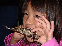■羅臼熊の湯 相変わらず、お湯が熱い。年々ひどくなるようにも感じる。かななず地元の口の悪い親父さんがいて、マナーの悪い観光客へ罵声が飛ぶ。 このジモティーが要る限り、お湯の温度を下げることは不可能で、熱さに我慢して入るしかない。というか、これがここの特徴とも言える。 ただ、子供にとってはこの熱さはかなり厳しく、カズもかなり粘ってみたが、結局自分では入れず。この様子を見て、親父から野次が飛ぶもんだからすっかり機嫌を損ねた。もう絶対熊の湯には行かないということに......。 ■夕食はガヤとオショロコマ カズは、熊の湯の一件もあってか、すっかり疲れてしまい、夕食まで起きていられずダウン。飯抜きで寝てしまった。3人で、ガヤとオショロコマを塩焼きでいただいた。オショロコマは、久しぶりに食べたが、意外に脂が載っておいしかった。今年暑いので、虫など例年より多くたべているのかもしれない。焼くと脂がしたたるほどだ。