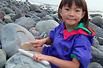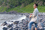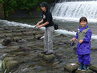 朝起きられず、まづめを逃す。キャンプサイトにエゾシカが現れた。今年は、シカや、北キツネが例年に無く多い。お盆前だからか? ペレケを偵察するが、マスの気配なし。幌別では数本上がった模様(釣り人の数は約30名だから、ほとんどがボーズ)。 カラフトマスをあきらめ、今日も羅臼へオショロコマ釣りに行くことにした。 ■羅臼川で 大型オショロコマ連発! 朝から、羅臼は雨が降っており、若干昨日より水量が増しており、チャンスだと思ったが、やはり昨日とは全然違う。数、サイズ共にランクアップ。なぜか子供たちは大型のオショロコマを連発だ!
