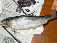 目は、最大の難関だが、カズがニジマスの写真を印刷して、写真から目の部分をくり貫き、これを剥製の目にはめ込んだ。ちょっと離れて見ると結構いい感じ。