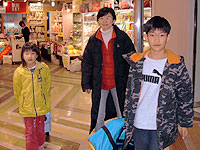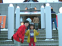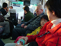 13:00頃には空港に着き、福島から来るおじいちゃん、おばあちゃんと、お兄さん一家の6人を待った。福島からの便が多少遅れたが、全員そろい、空港からニセコまでのバスを待った。ところが、このバスがなかなか見つからずに苦労した。何度かバス会社へ電話したが、どうにも運転手と会えない。運転手さんと直接携帯で連絡がつき、やっと見つかった。どうやら、我々は、もうすぐバスが行きますとの一言で、空港の出口の外で待っていたが、運転手さんは空港内の到着ロビー内で探していた模様。そもそも、うちが一本早い飛行機に乗ってしまったことが敗因だった。運転手さんは、この乗るはずだった便の到着に合わせて到着ロビーで待っていたのだ! これで30分以上空港でロスしてしまった。 |