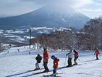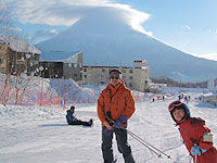 昨日は、天気がいまいちだったが、1/1は朝からすばらしく晴れた!。ニセコの頂上までくっきりです。 最高って思ったのもつかの間で、午後にはまた雪です。
