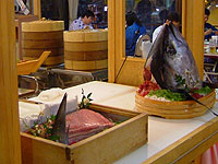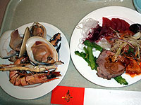 さすがに、お正月。いつもと同様バイキングですが、今日はエビ、ハマグリと、ホンマグロが良かった。 |