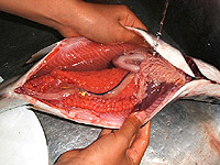■キャンプ場でカラフトマスをさばく