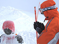 かずとたけは、せっかく出来ている樹氷を壊すのが楽しいらしく、ストックでつついてしまうのでした。