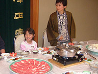 この日の夕食は、宴会場で、すき焼きとしゃぶしゃぶ。肉が旨い。おなかいっぱいまで食べてたのでした。