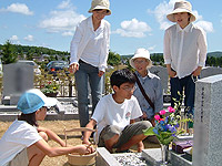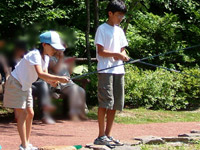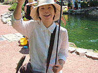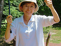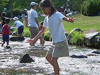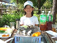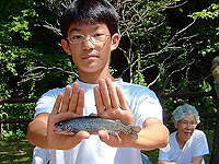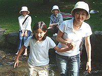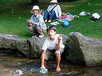 墓参りの後は、いつものすずらん丘陵公園。まずは、ニジマスの釣堀で魚をゲットして、炭焼きの昼食。そのあとは、冷たい川のなかをお散歩。