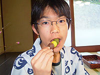この日は、馬路村の馬路温泉に泊まった。ここに泊まるのは初めて。いつもはお風呂だけだったので..。温泉に着く前に、まかいちょって家(村の案内所)に寄る。カズが原因不明の足痛になってしまう。車いすを用意してくれるってことに...