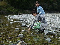 もう時間もないけど、四万十川にごあいさつ。いつもの天満宮前キャンプ場に寄り、ちょっとだけ川にタッチ。