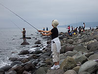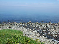←このあと、まずは偵察で、ウトロ側を戻ってオチカバケの河口を見た。なんかよさそうだが、時間が時間なので、竿は振らず、。日が昇って来てから急激に暑くなって来て、知床だと言うのに30℃を越している。これじゃ魚も釣れないんじゃないかと勝手に思い込み、あまりに暑いので、ウトロ側でやるのをやめて羅臼側へ行くことにした。いつも羅臼は寒いので...