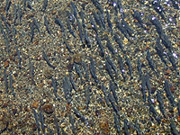 ↓途中の遠根別川には、無数のカラフトマスが遡上中だった。こんなにたくさん登っているのは初めて見た。 |