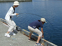 ←そしてすぐにママにもヒット。これは結構大きかったのだが、残念ながらネットイン直前にバレてしまった。もう少し強引に行けば良かったか??ルアーは、チヌークの17g(赤) |