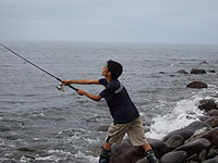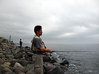 | あちこち回っているうちに時間がなくなり、5時半頃からようやくオチカバケの河口に入った。パパがチヌーク14gの赤で2本+1本バラシ、ママが1バラシ。魚は濃い。 |