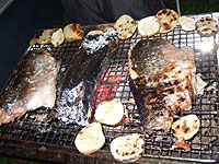 この日は、塩焼きで。じゃがいもと一緒に炭火焼です。