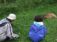朝、カズが疲れたようで起きて来ず、釣りに行けなくなってしまった。テントサイトに子ジカが現れた。