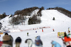 | 二日目は、朝から絶好の天気。ピーカンです。しかし、時間がなく、滑れたのは正味2時間くらい。昨日止まっていたゴンドラが動いてたので、上まで上がり、本白根を滑れるかな?と思ったが、こちらはリフトが動いていなくてNG。