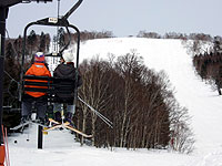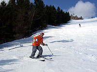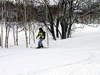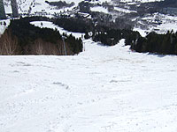 | ゲレンデの下の方は雪が重いが、上の方はまだ大丈夫。少々雪が硬いけど、そんなにきつくもないレベル。 |