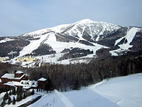 | 2005年から、やってる試みらしいが、”冬山開放宣言”というのが目に入った。インフォメーションセンターの冬山開放デスク→で申請すれば、オフピステへの進入が許可され、ほとんど全山すべることができるもの。