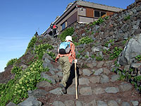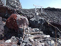 新七合目、元祖七合目と、つぎつぎと休憩地点が現れるので、気分が楽になるが、少しずつ、息苦しい感じもしてきた。 |