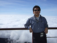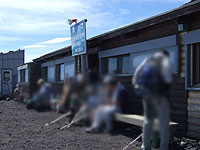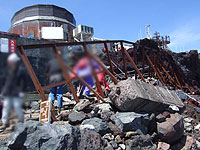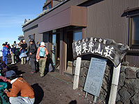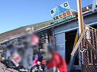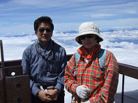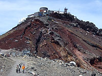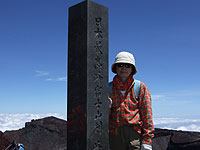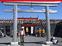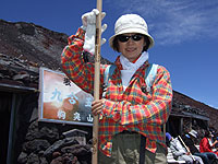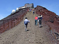 | 10時40分頃、ようやく山頂に到着だ。最後も登りがきつく、結構へへろへろだ。ママは、私よりぜんぜんしっかりしている。ここには、おみくじ売ってたり、郵便局があったり、へーっ!って感じ。少し休んでから、本当の富士山の頂上である”鶴ヶ峰”へ向って出発。