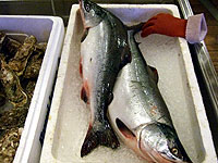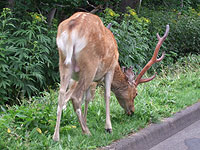 まずは、羅臼の道の駅で夕食の食材を物色。カラフトマスがでかい!今回はこんなのが釣れるかもと期待が高まる。 ママが来たので少し気が大きくなり、ブドウエビとタラバをゲットだ。これから知床峠越えてウトロへ向かう。 知床峠は、いつもながらキツネやエゾシカがご挨拶。しかし、左の写真にあるように、観光客がエサが与えているので、こんなに道路に出てくる模様。これをやっちゃ行けないとあれほどアピールしてるのだが、通じないのかなー!?子供達は、本気で怒って、車の中からだが、えさやっちゃダメだよー!って叫んでました。