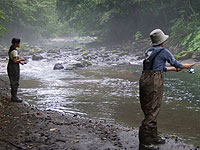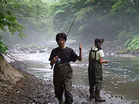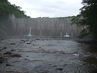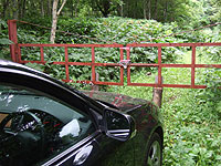 さぁ、釣りを終えて、帰路ですが、林道を走ってて、何か変が感触。どうもハンドルが取られるし、ショックが大きい。いやな予感がしたが、このダートで何もできないので、舗装道路まで走った。