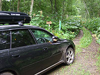 ところが、しばらくすると、だんだん左前が低くなってくる。だんだんおけつが上がってくる感じ。これはまずいと思ったが、今標津で、ウトロまで帰らなければならず、スペアタイヤももうないので、とにかく慎重にウトロまで帰るしかないという判断で、ゆっくりと走る。知床峠はやばいので斜里経由で70kmくらいあるのだが、なんとかウトロまで帰った。ウトロで見て見ると、右前輪も完全にペチャンコ。どうしようかと悩んだが、どうしようもない。あとでわかったのだが、もう一本左後ろのタイヤもクギが刺さっていた。
