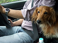 車の中では、おしっこ、ウンチを我慢できるようだ。でも、山道では酔うらしく、吐く。これが問題。 |